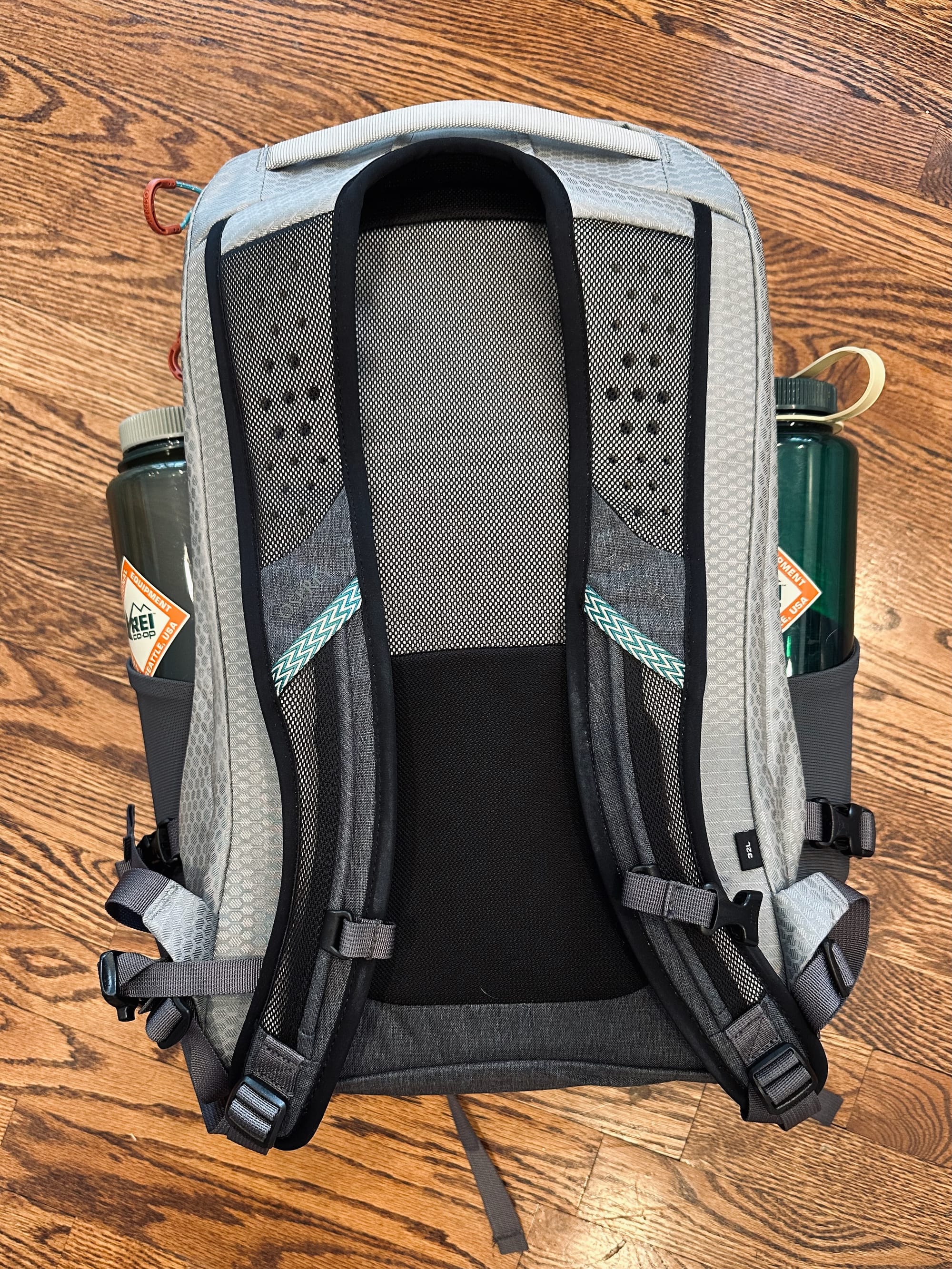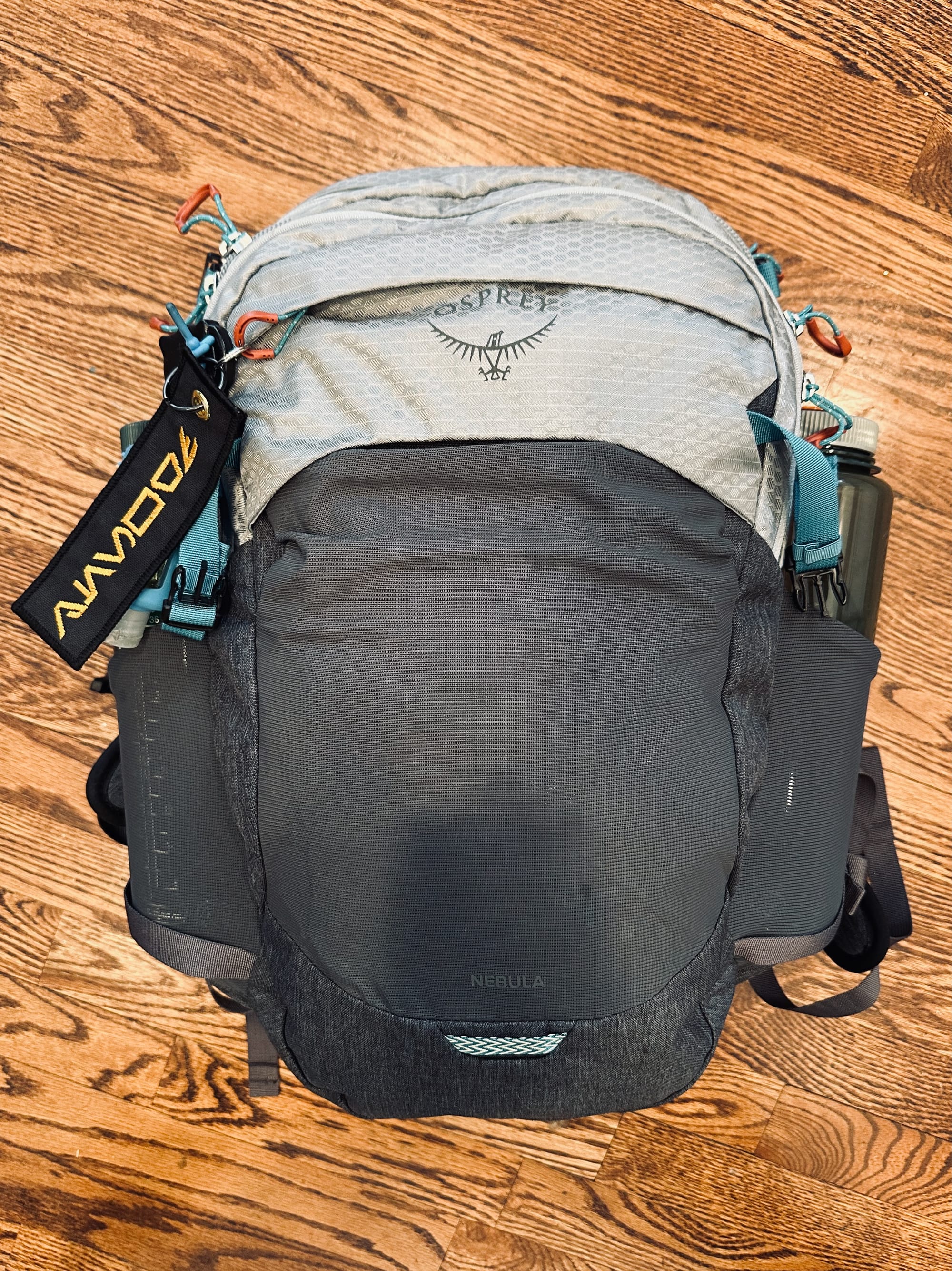 As I mentioned earlier, the Osprey Nebula can easily handle the largest of water bottles. We typically bring a large 32 or 48oz wide-mouth Nalgene and an insulated bottle such as a Hydroflask.