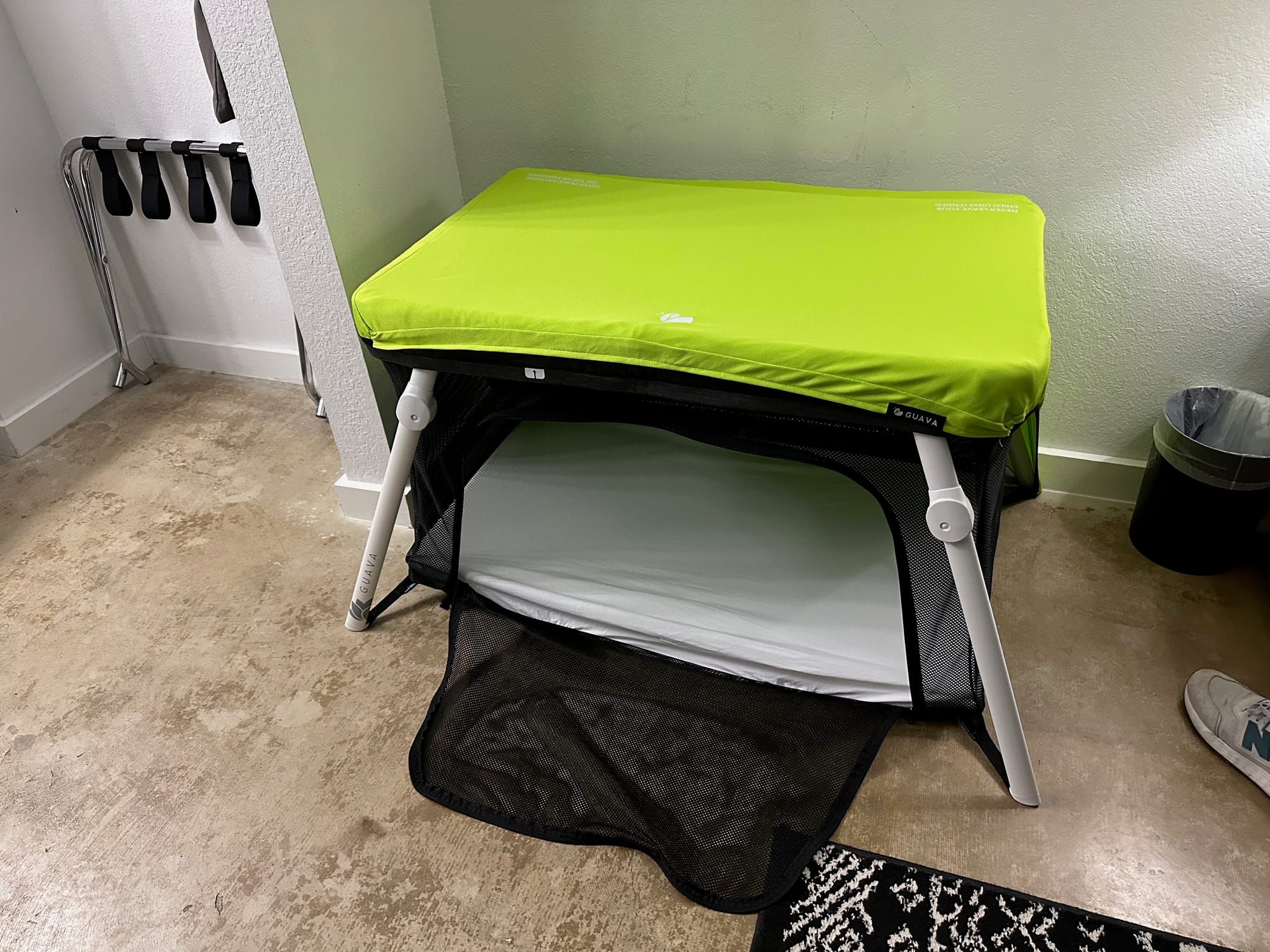We typically try to book accommodations that provide an infant crib, but if availability is uncertain, we prefer to bring our own. We've flown with both the classic Graco Pack'n'Play and the slightly more premium Guava Lotus travel crib, finding both to be solid, reliable options.