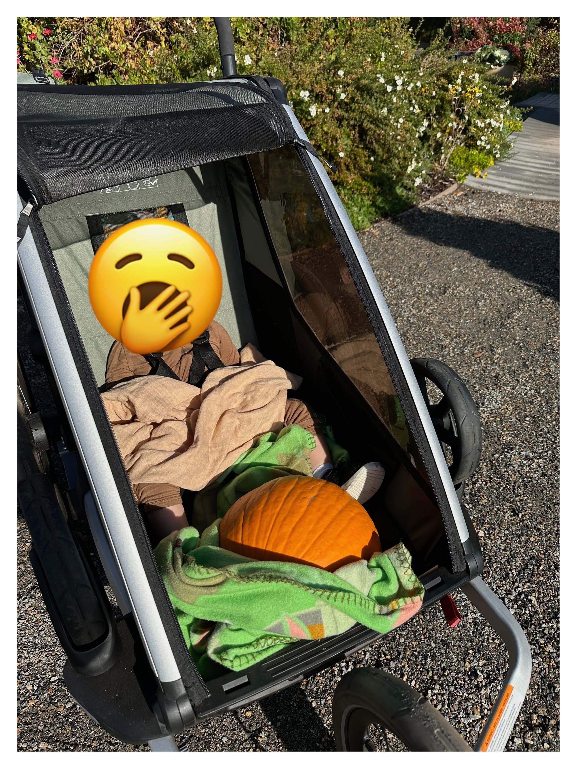 Like I mentioned earlier, I wish we had brought a wagon and a baby carrier (either our Osprey or Tush Baby) instead of the Thule Chariot. The Thule did its job fine, but was just a bit limiting when it came to lugging both a pumpkin and a kid around.
