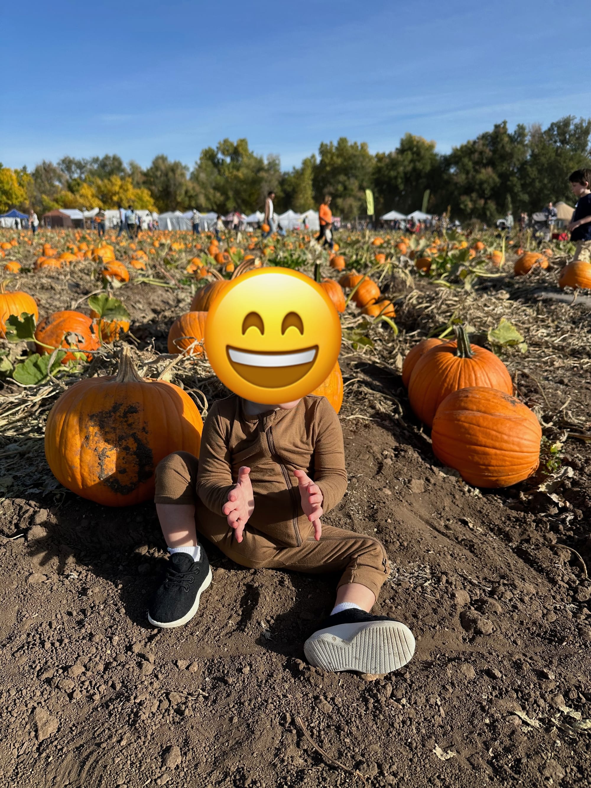 They recommend bringing a wagon to carry them and I wish we had because our Thule bike trailer got a bit crowded between the kid and the pumpkin.